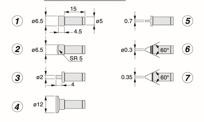 Mätinsatser, per par: 1 ø 6,5 ø5 0,7 5