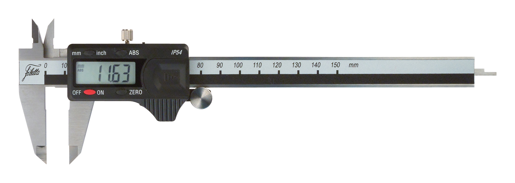 Skjutmått med ett absolut mätsystem. Detta ger dig fördelen att skjutmåttet lagrar en inställning av absolut noll läge tills batteriet måste ändras. Detta minskar risken för att mäta fel och gör att du kan använda caliper utan noll.